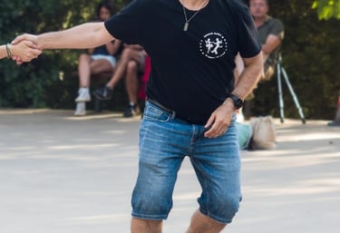 Guille nació en Buenos Aires, en una familia en la que se bailaba Jazz. Con el tiempo se trasladó a Madrid, donde descubrió el Swing y el Lindy Hop, de los que se enamoró por su alegría y conexión.
